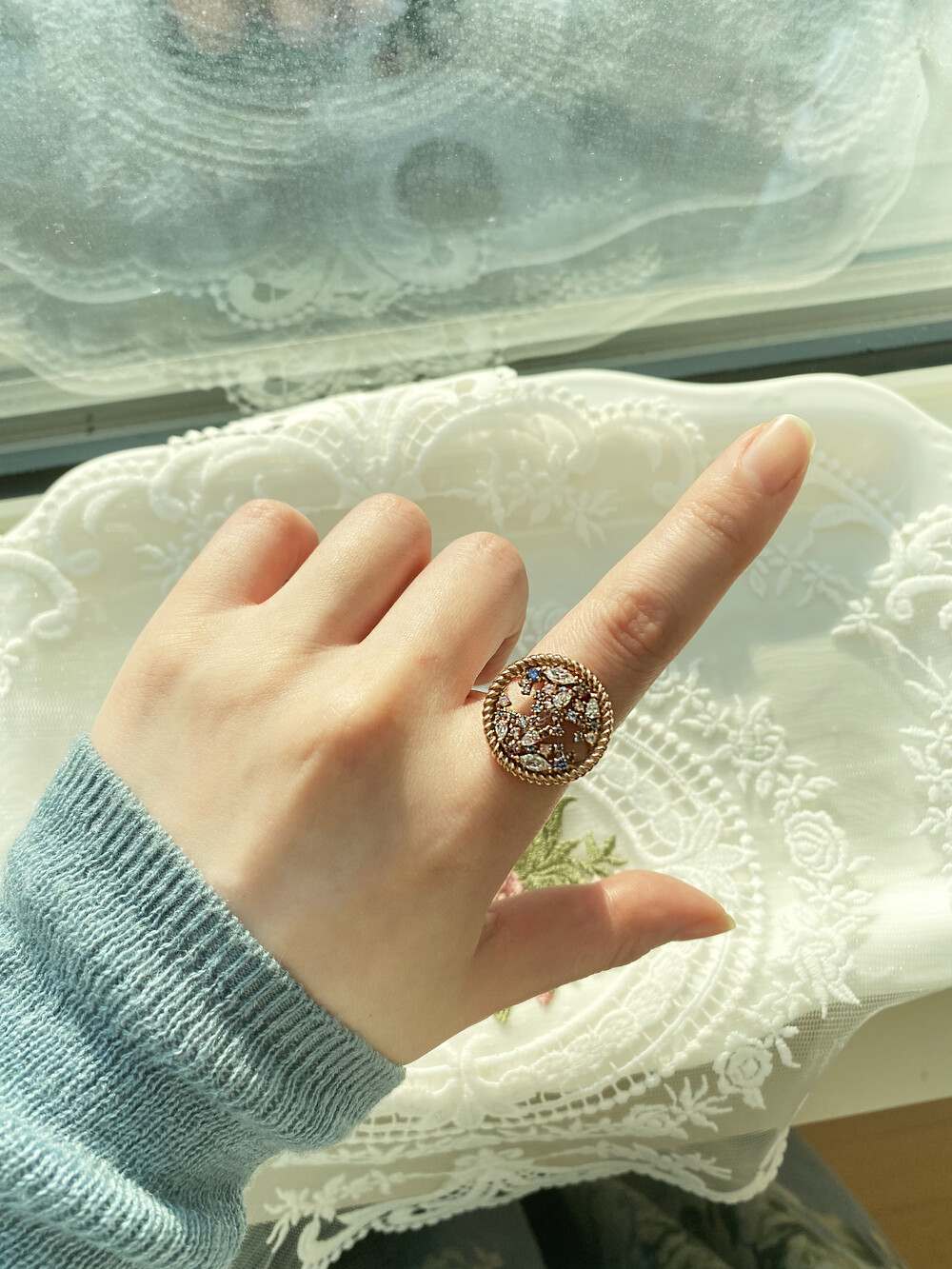 스톤의 색감, 배치 조화가 예쁜 링이에요