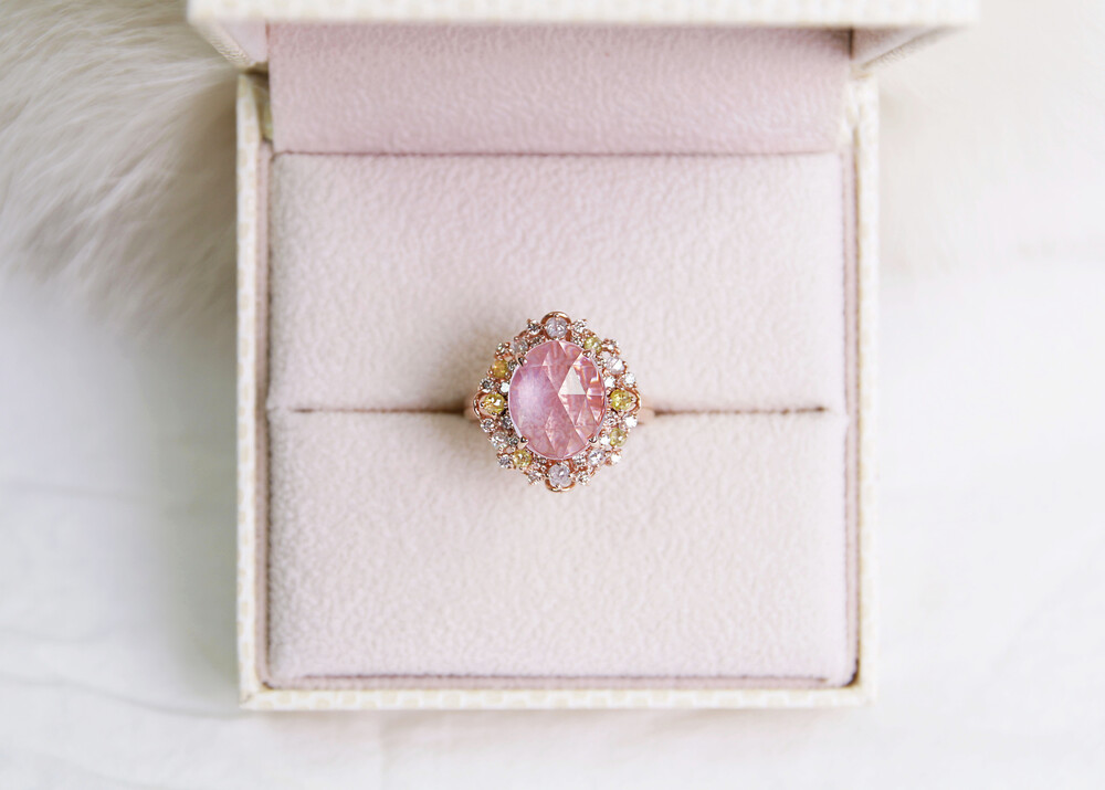 - Rose Quartz, Rough Diamond, White Diamond,