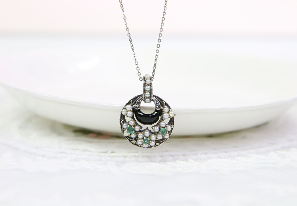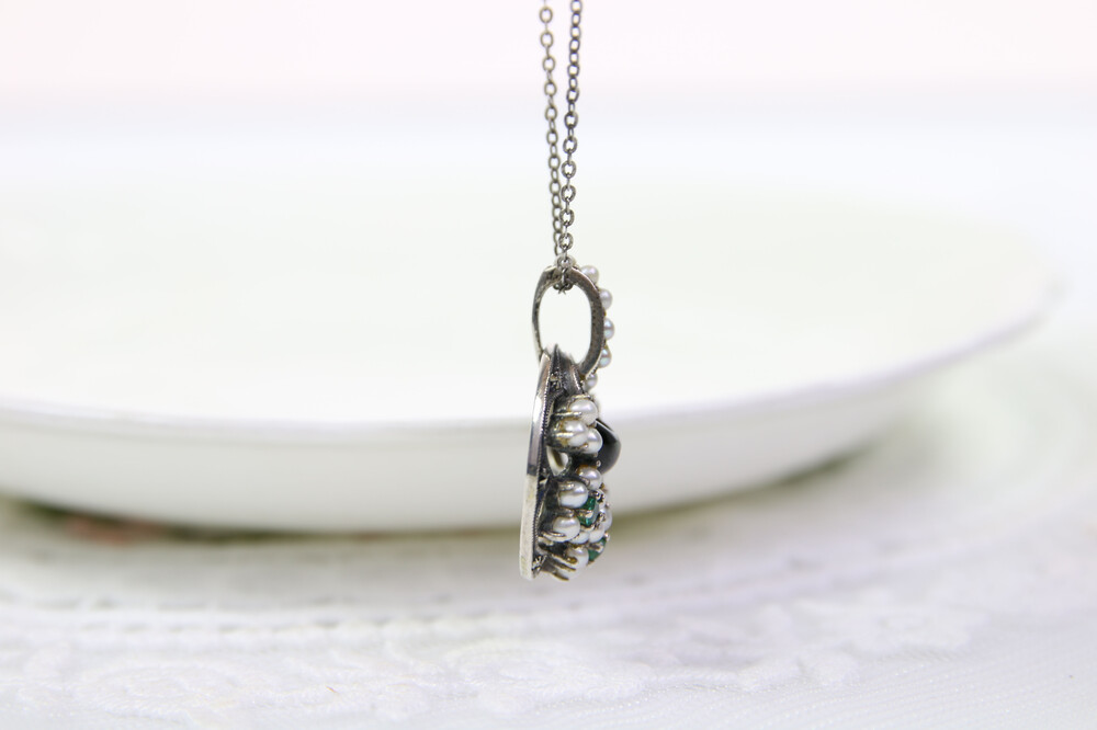- Onyx, Green Sapphire, Seed pearl,