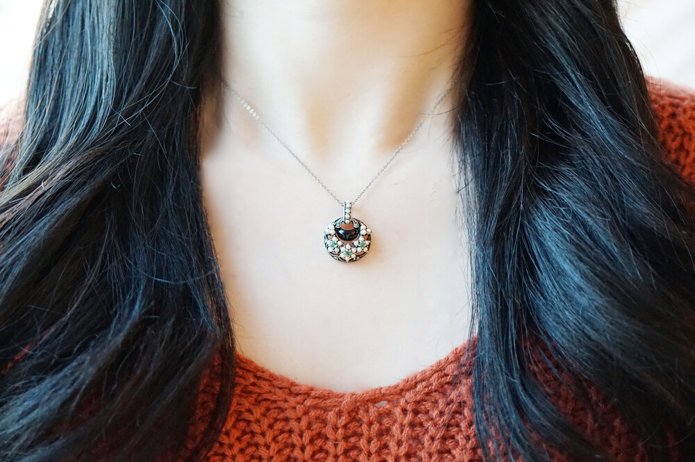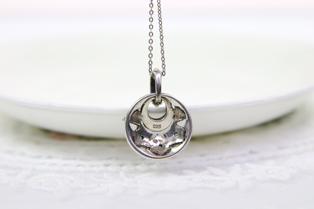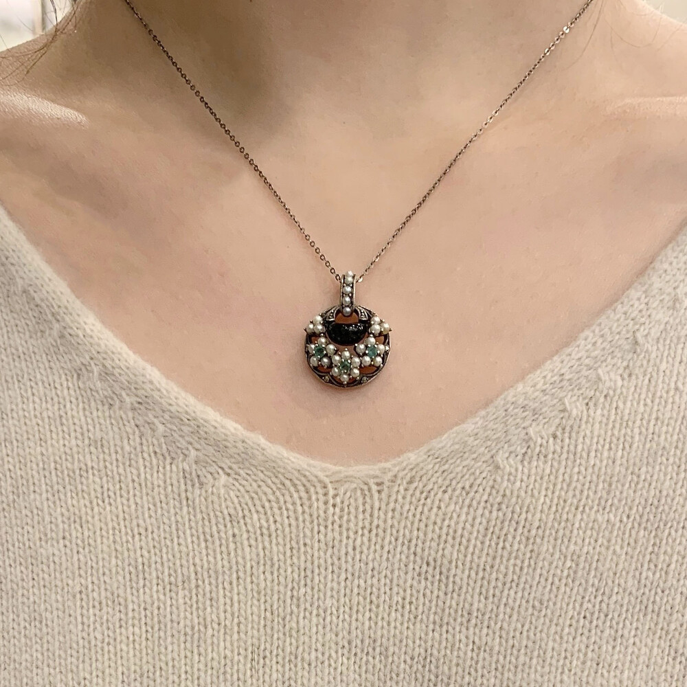 반달모양의 오닉스와 그린사파이어, 담수진주의 꽃모양으로 디자인된